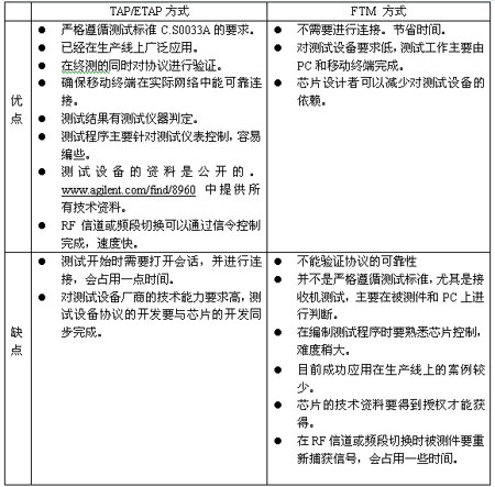 移動(dòng)終端在生產(chǎn)線上主要進(jìn)行RF校準(zhǔn)并執(zhí)行部分基于C.S0033A 的終測(cè)。按照C.S0033A的要求,移動(dòng)終端性能的測(cè)試是建立在TAP/ETAP協(xié)議基礎(chǔ)上的測(cè)試,也就是業(yè)內(nèi)常說的基于信令的測(cè)試。作為CDMA2000和1xEV-DO的主要芯片供應(yīng)商Qualcomm,自己也推出了一種生成線測(cè)試模式FTM,可以近似地完成C.S0033A中的部分測(cè)試。下面分別對(duì)這兩種生產(chǎn)測(cè)試方法進(jìn)行介紹。
