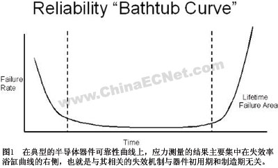 在半導(dǎo)體器件中,應(yīng)力檢測(cè)是衡量器件運(yùn)行壽命和損耗失效的常用方法。該測(cè)試關(guān)注的失效機(jī)制位于圖1所示典型失效率浴缸曲線的右側(cè);這就是說(shuō),并不關(guān)注與器件初用期或制造期相關(guān)的失效。