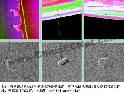 也確有一些解決方案。應(yīng)用材料有一些早期時針對SEM平臺的應(yīng)用,當抓到一些圖像時,使用光學(xué)顯微鏡觀察晶圓邊緣(圖1)。這個系統(tǒng)提供照片使得監(jiān)控實現(xiàn)定制,嘗試定位宏觀邊緣缺陷,然后操縱SEM移動到那里。應(yīng)用材料工藝診斷與控制組SEM部缺陷檢查全球產(chǎn)品經(jīng)理Renan Milo說:"隨著方法成熟、措施得當,大缺陷是能夠避免, 我們的注意力將轉(zhuǎn)向更小的缺陷,這就需要更好的檢查和觀測能力。"