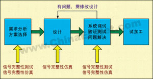 信號完整性測試是信號完整性設計的一個手段,在實際應用中還有信號完整性仿真,這兩個手段結(jié)合在一起,為硬件開發(fā)活動提供了強大的支持。圖1是目前比較常見的硬件開發(fā)過程。