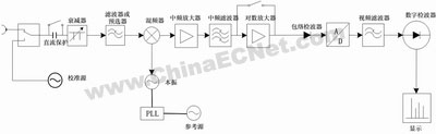 典型的頻譜儀電路框圖如圖1所示。其中ADC處于中頻信號(hào)之后,對(duì)中頻(或視頻)信號(hào)進(jìn)行采樣和轉(zhuǎn)換。ADC的性能影響到頻譜儀的噪聲和信噪比等指標(biāo),還影響到頻譜儀的失真指標(biāo),包括諧波、雜散和互調(diào)失真。