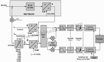 以羅德與施瓦茨公司FSQ為例,對(duì)于A/D轉(zhuǎn)換和數(shù)據(jù)分析部分進(jìn)一步分析,框圖如圖2。